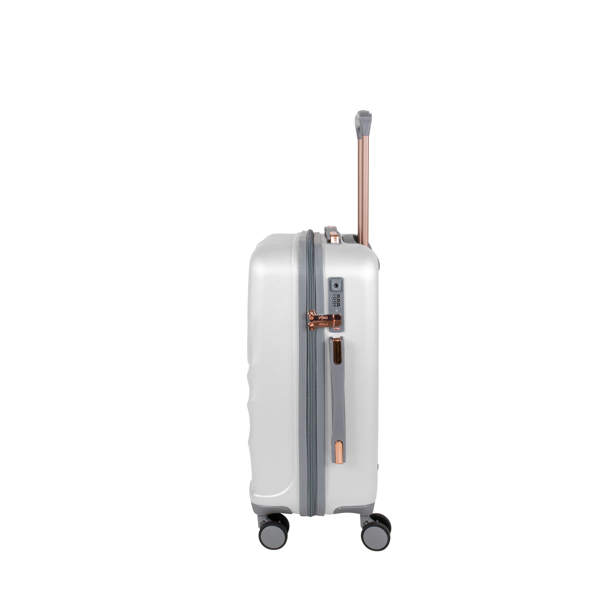 Mit dem kleinen Rollkoffer „Amy“ bist du bestens ausgestattet für dein Mädels-Wochenende. Die elegante Riffeloptik in Kombination mit roséfarbenen Metall-Details verleiht deinem Reisegepäck eine besondere Note. Robust, sicher und komfortabel: Dieser Trolley ist die perfekte Mischung aus Design und Funktion.